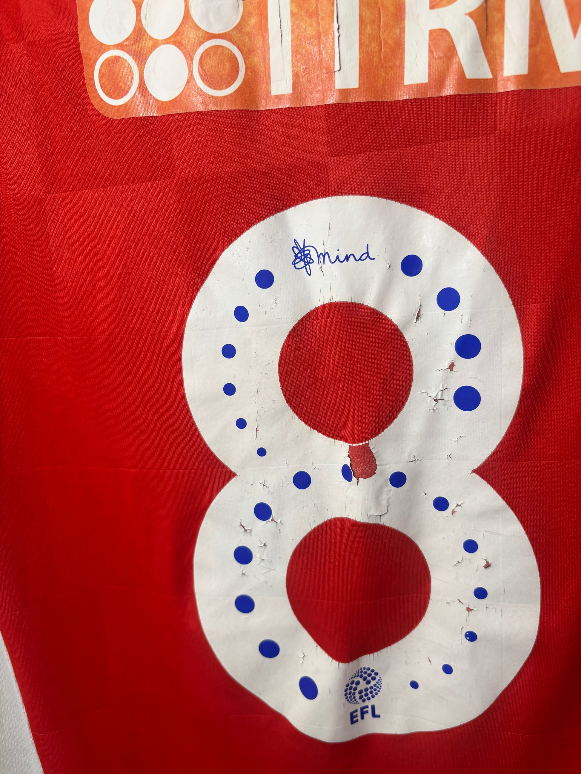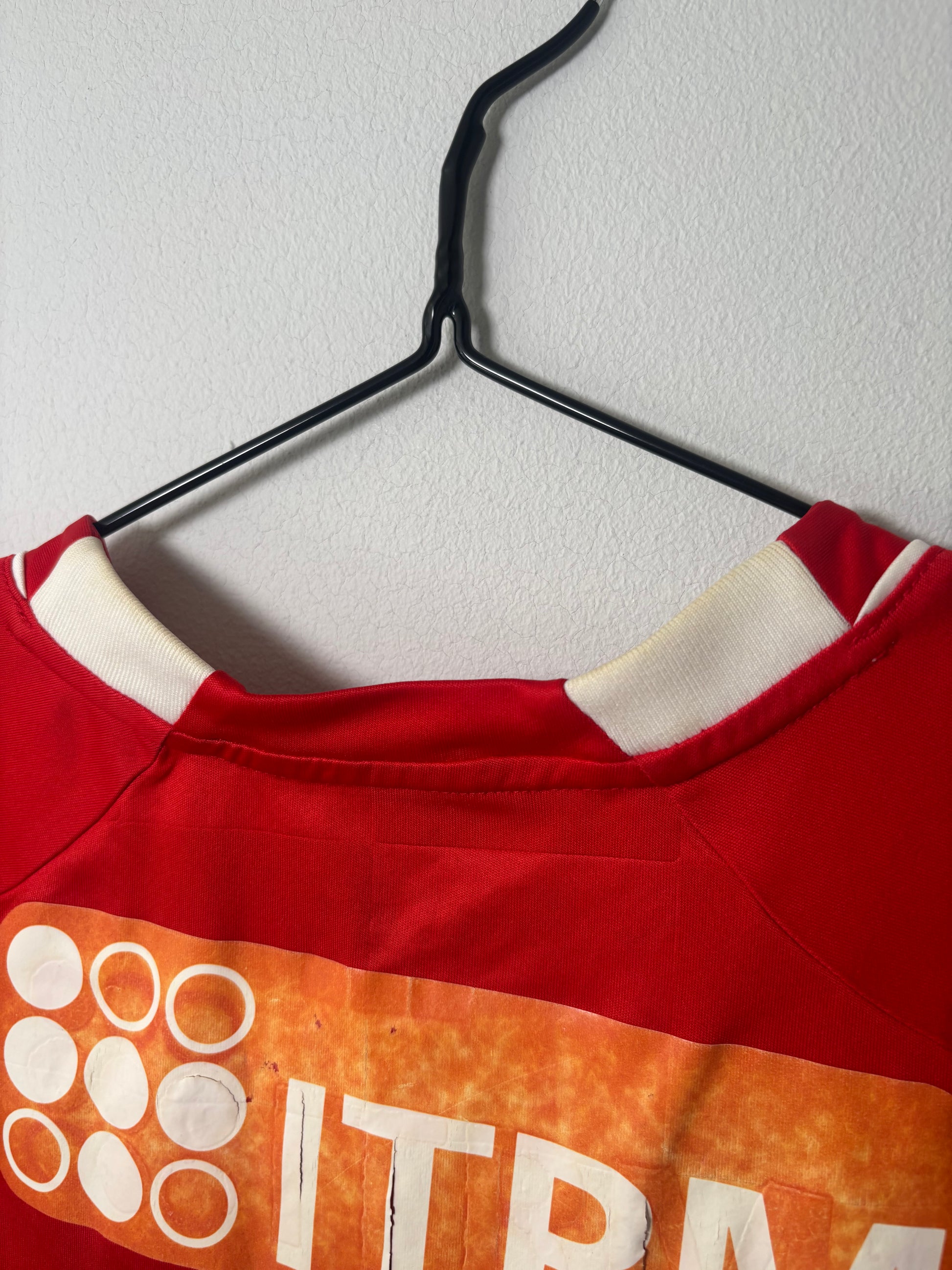 Condition- decent quality, sponsor wear and number wear. Marks under sponsor and around collar